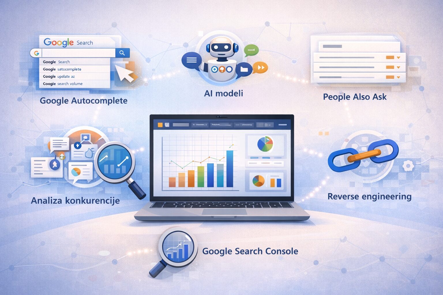 Pronalaženje pravih termina zahteva kombinaciju besplatnih Google alata i profesionalnih platformi poput Ahrefs-a i Semrush-a.
